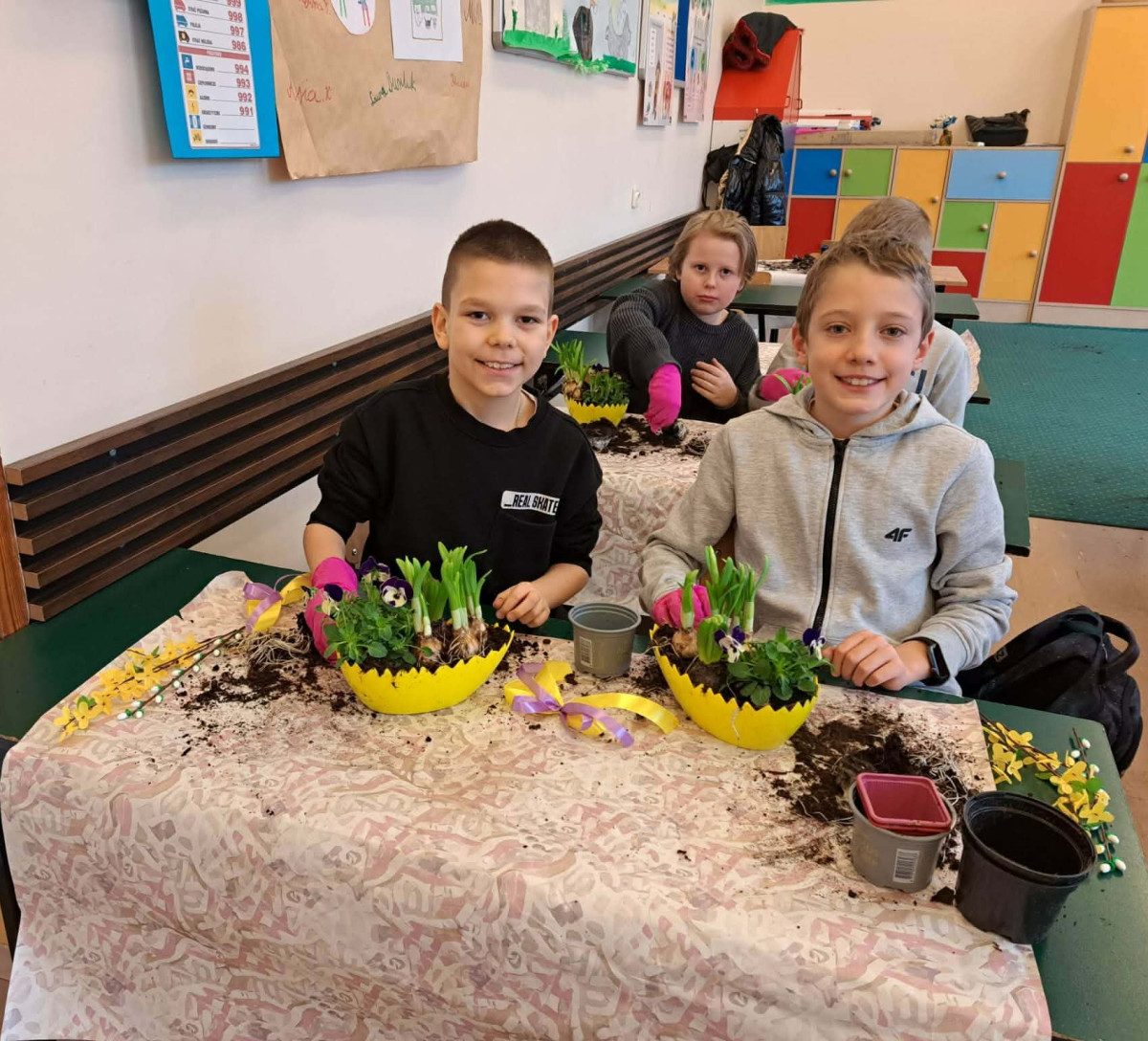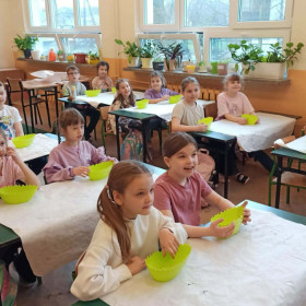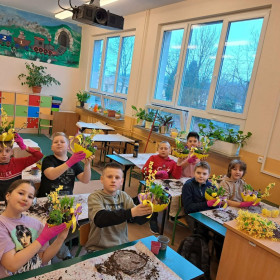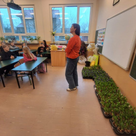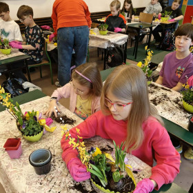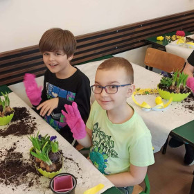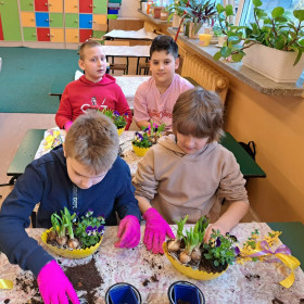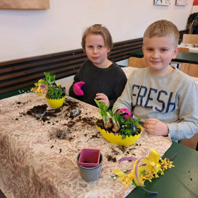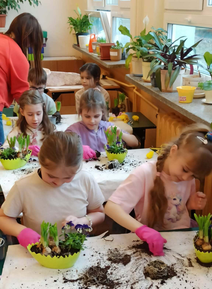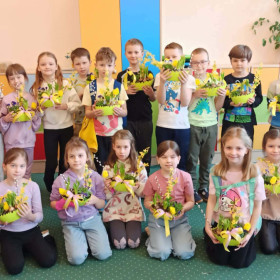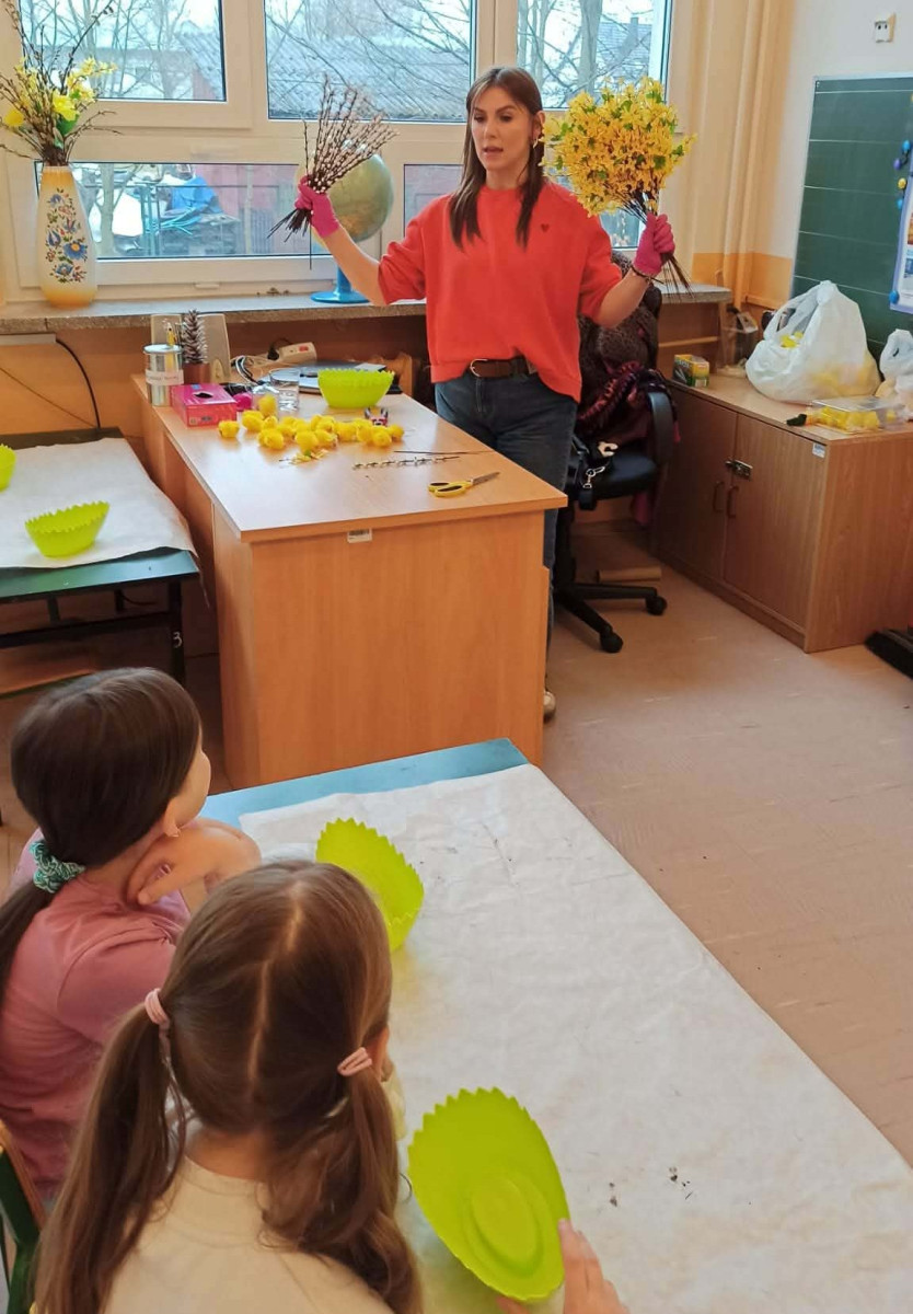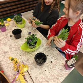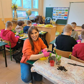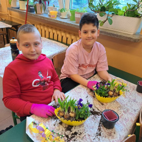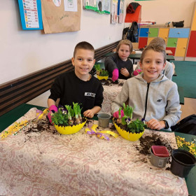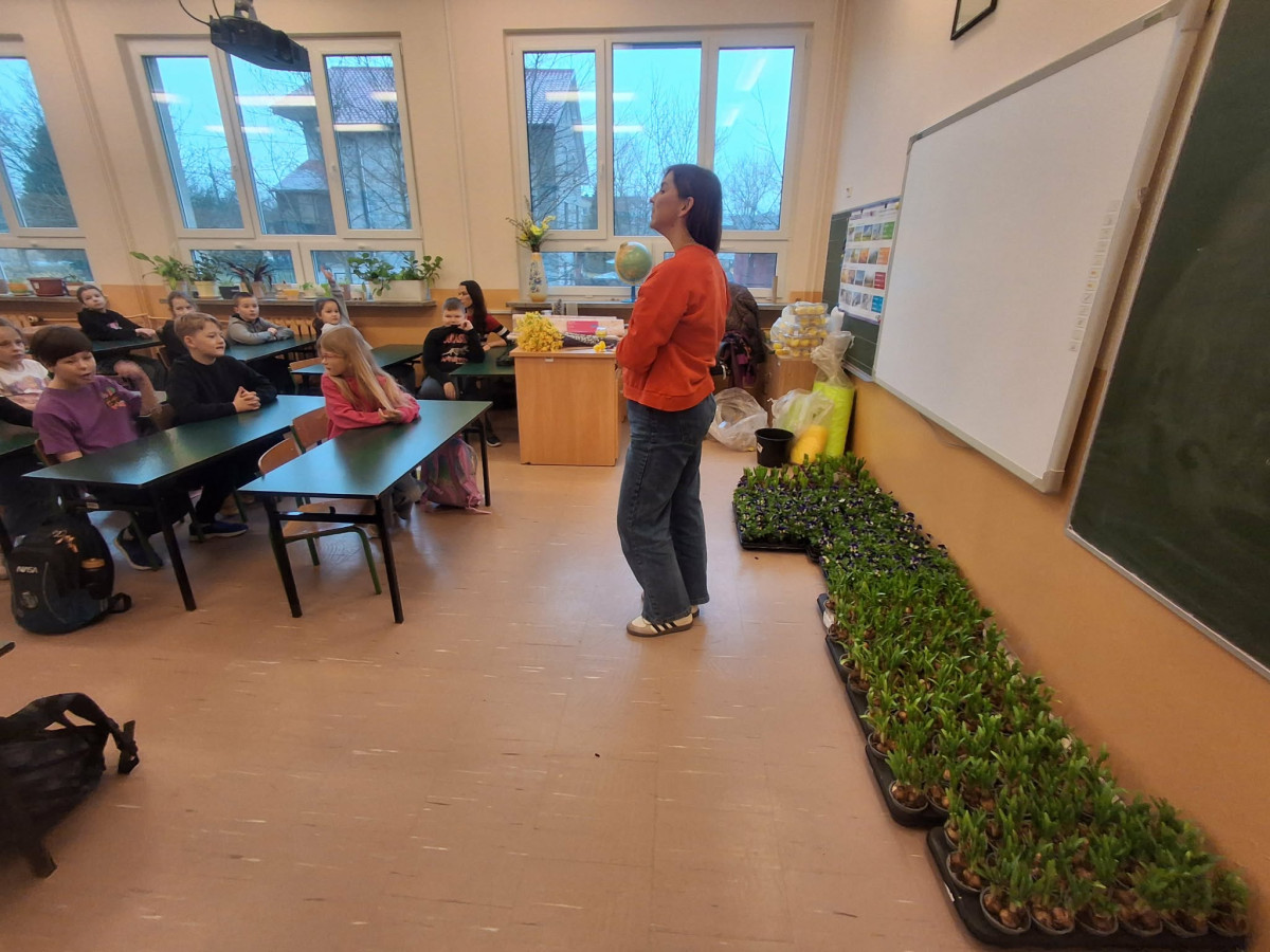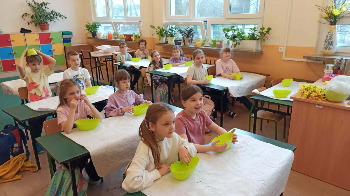 W dniu 30 marca uczniowie klas 1–4 uczestniczyli w wyjątkowych warsztatach florystycznych, podczas których mieli okazję własnoręcznie przygotować żywe stroiki świąteczne. Pod czujnym okiem prowadzącej zajęcia, florystki pani Pauliny, dzieci uczyły się łączyć świeże kwiaty i dekoracje, tworząc unikalne kompozycje, które wprowadziły w klasach świąteczny nastrój.