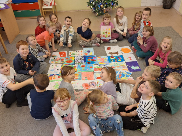 Zerówka przygotowała swoje świąteczne dekoracje – gwiazdki, choinki oraz pierniczki upieczone przez Panią Martę, mamę Filipa – na konkurs „Najpiękniejsza Choinka Bożonarodzeniowa”.