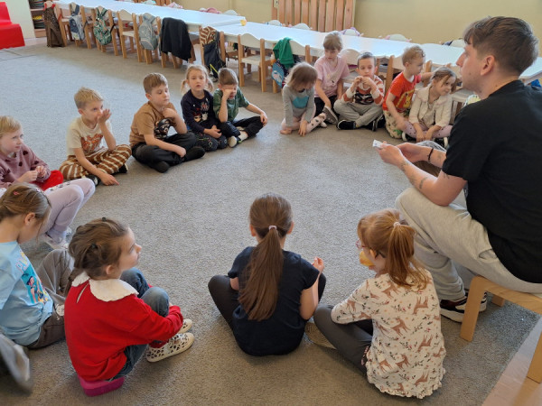 W zerówce odbyły się zajęcia z psychologiem szkolnym, Panem Jankiem, poświęcone tematyce emocji. Dzieci rozmawiały o tym, czym są emocje oraz jak je rozpoznawać, rozumieć i w odpowiedni sposób nad nimi panować.